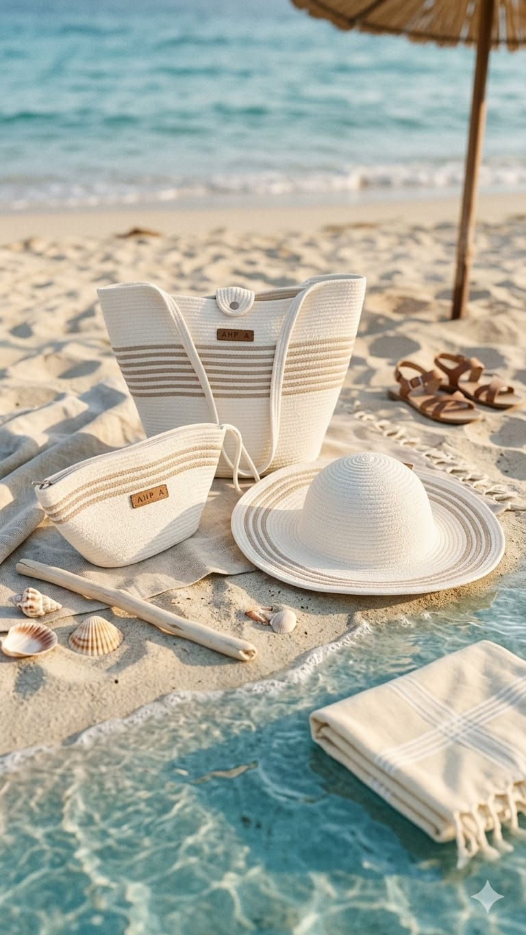Plaj Çantası, El Çantası, Şapka Üçlü Takım